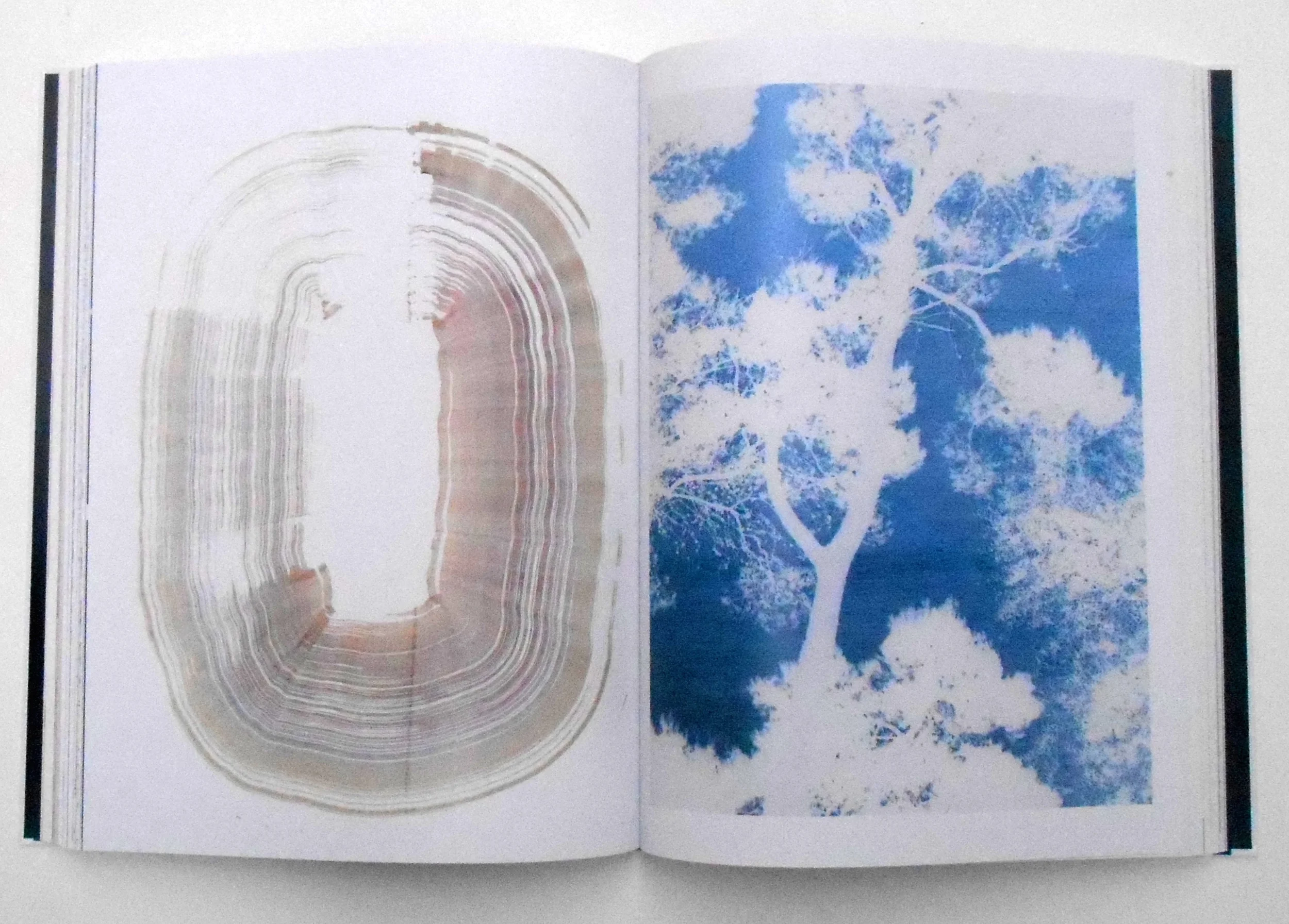 Cover: 6 p, china blue 250g, blind embossing | binding: Fadenknotenbindung, cover 3x striation | print: transparent paper 1/1 black/ highspeed gloss blank